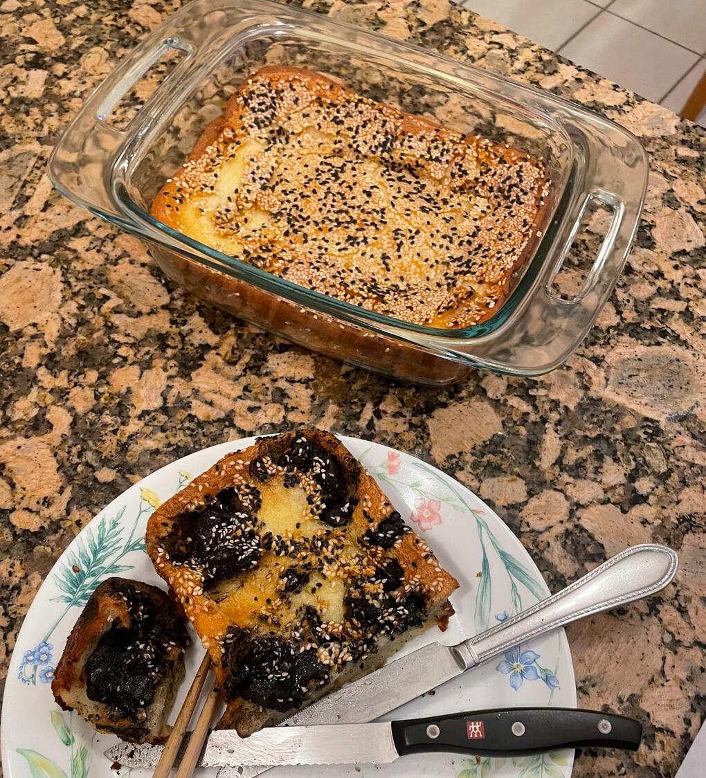 it's almost chinese new year, year of the snake, and you know what that means. red envelopes. and also food comas for daysss. obviously you have your key players of fish, dumplings, noodles, and si zi tou (lion's heads meatballs), however the sweet treats have always been my fav. nian gao is traditional chinese sweet rice cake that's considered as good luck because the way it rises in the oven is like raising yourself in life. best part is, it's so simple to make. and it's so customizable, with this black sesame one we made last year being top tier.